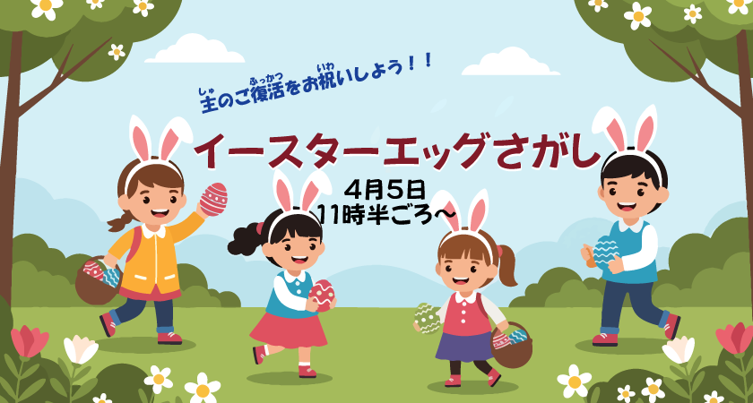 - イースターエッグさがし子どもたち集まれ! みんなでイースターエッグを探そう 今年もご復活の主日ミサ(4月5日10時)の後、11時30分ごろからイースターエッグ探しをします。 1階ホールで …