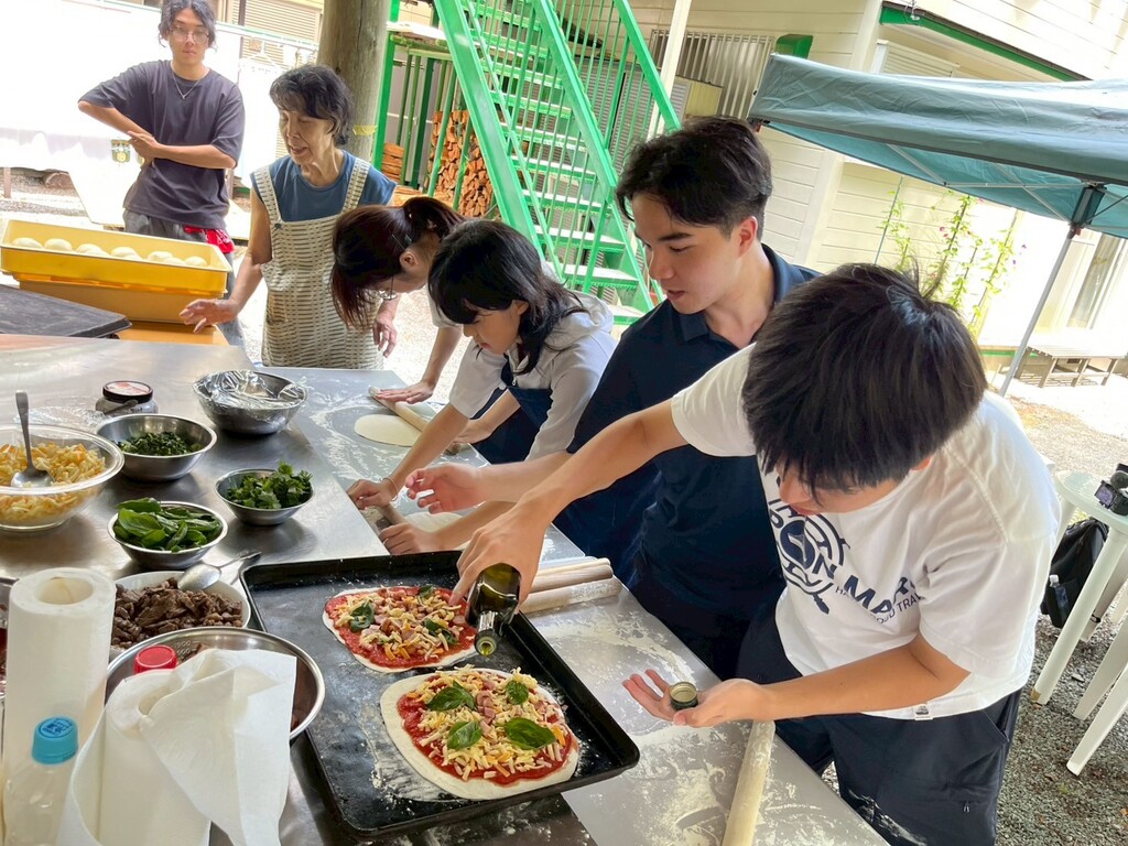 山荘ではシスター稲川から福島県浪江町の話を伺い、私たちに何ができるのか考えるきっかけをいただきました。星空の下でのバーベキュー、手作りホスチアで捧げたミサ、前日から火入れした石窯で焼いたピザ…。中高生2名、大学生3名と少人数の参加でしたが、自然に囲まれた山荘で共に過ごし共に祈る中で親睦を深め、神様のお恵みを分かち合うことができたことと思います。