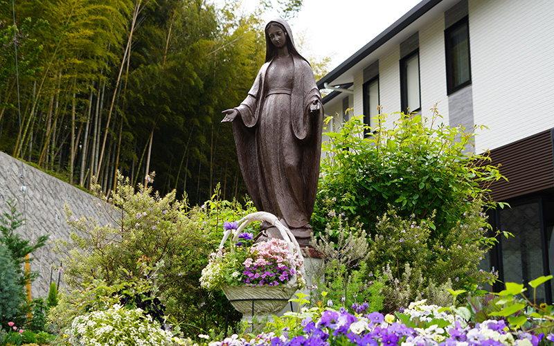 玄関ホールには都筑教会の保護聖人「聖ドミニコ・サヴィオ」の像が置いてあります。